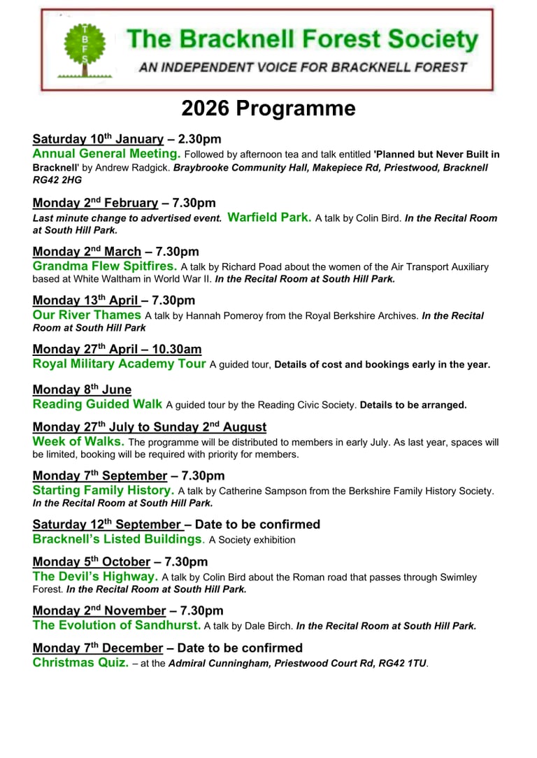 Our society was formed in 2007. We are a local voice safeguarding heritage, the environment, community and the future of Bracknell and its countryside.